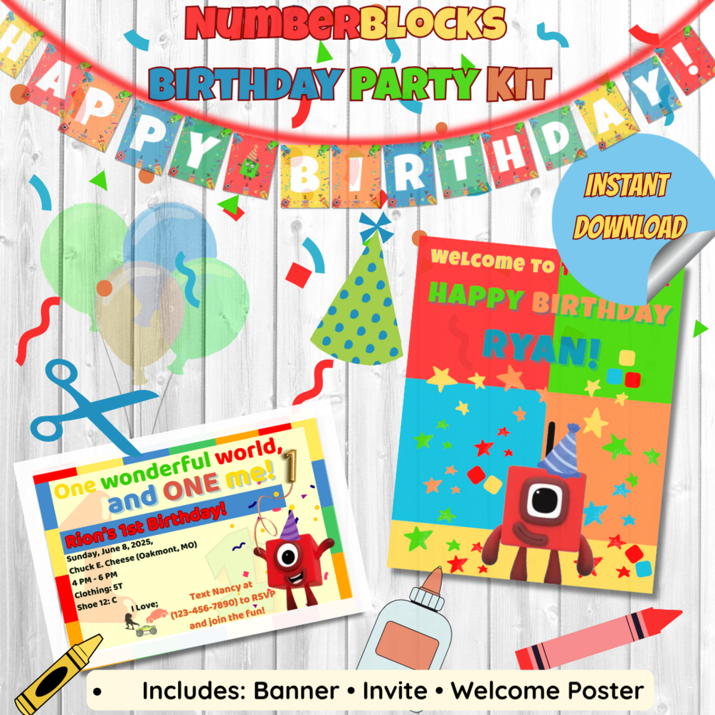 🎉 Mini Numberblocks Birthday Bundle – Editable Canva Template